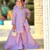 The shirt features intricate hand adda work with kora and dabka, while the shalwar is delicately adorned with sequins detailing, adding a soft, elegant sparkle.