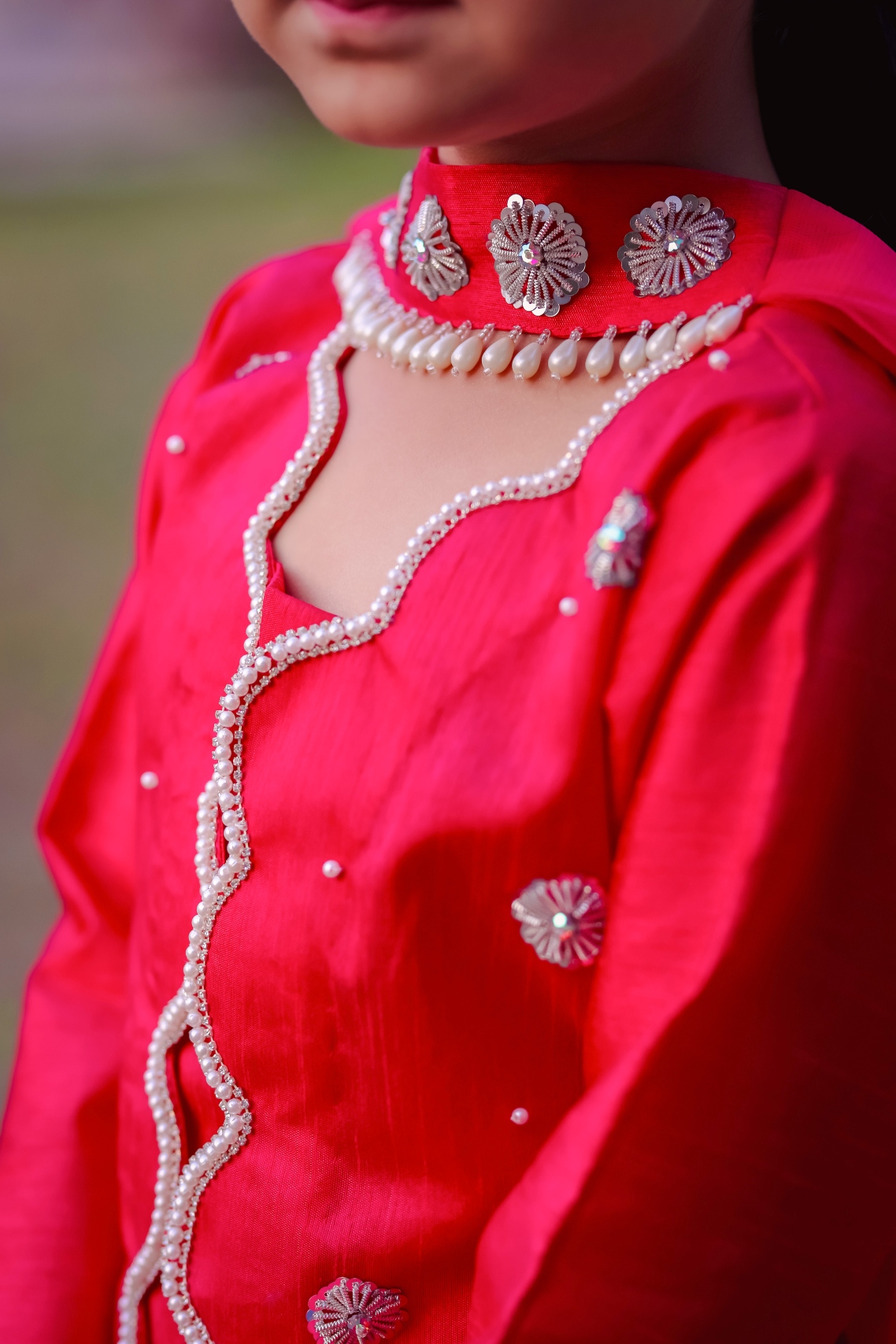 Where bold fuchsia meets timeless silver sparkle. Adorned with intricate adda work, pearls crystals made to shine with effortless grace.✨