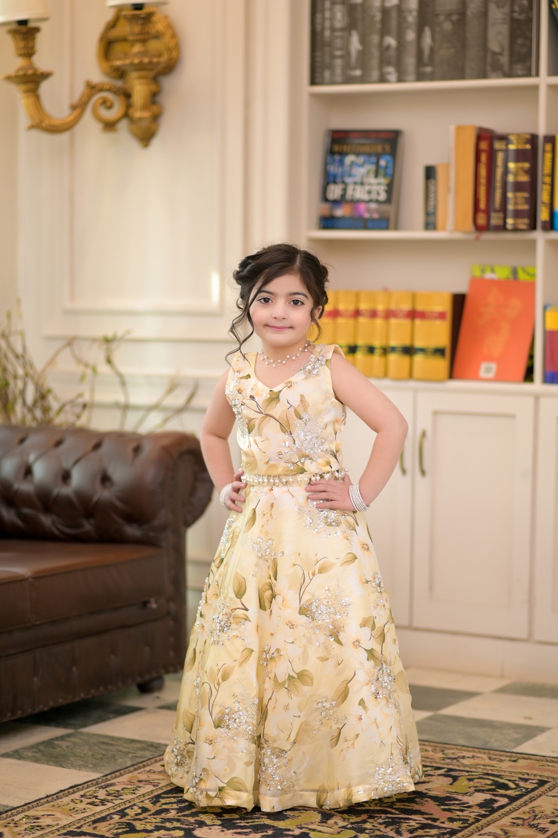 Dreamy ensemble of delicate charm and sophisticated elegance. Crafted with a beautifully detailed shirt adorned with cut moti and crystal work.