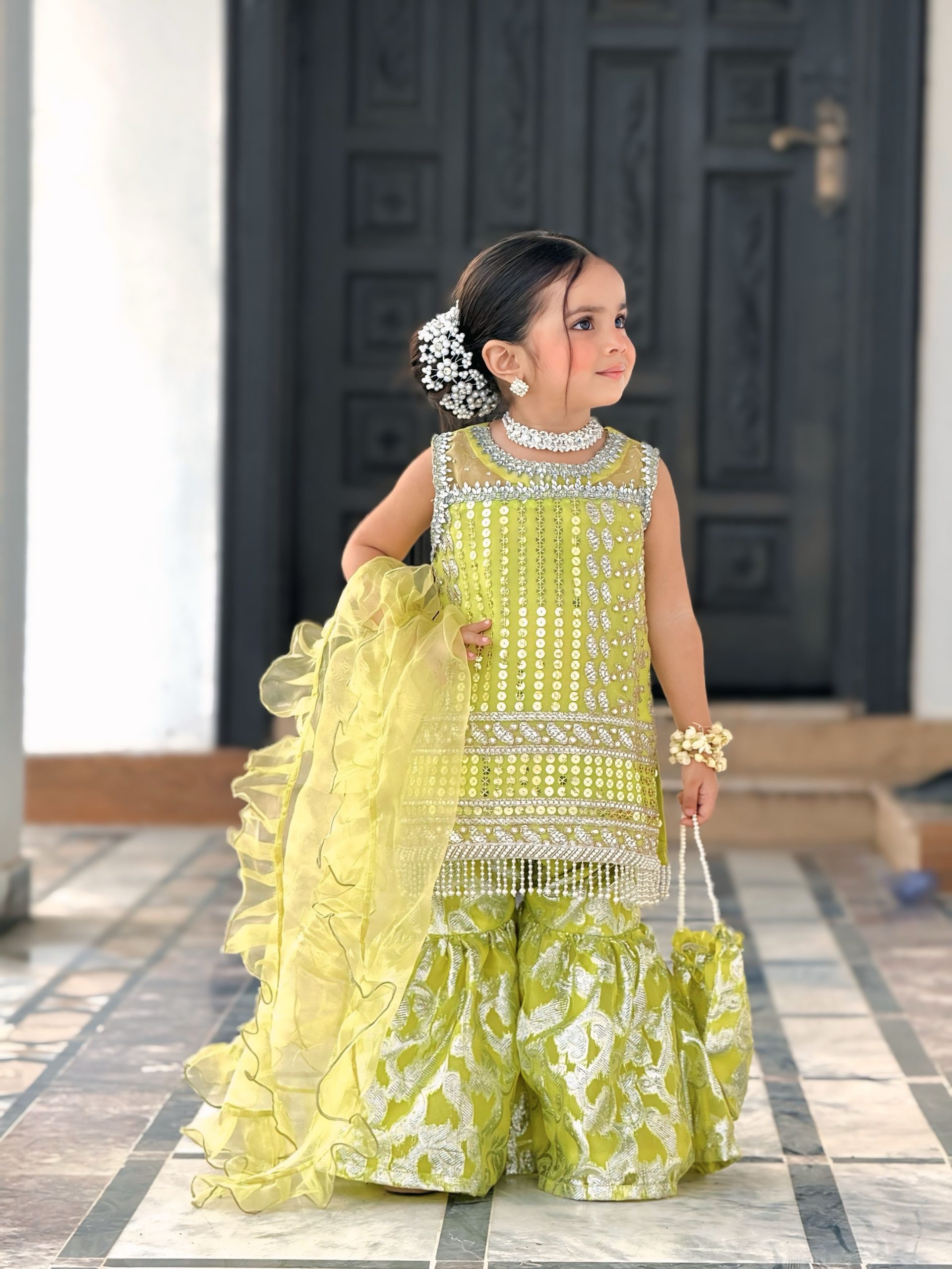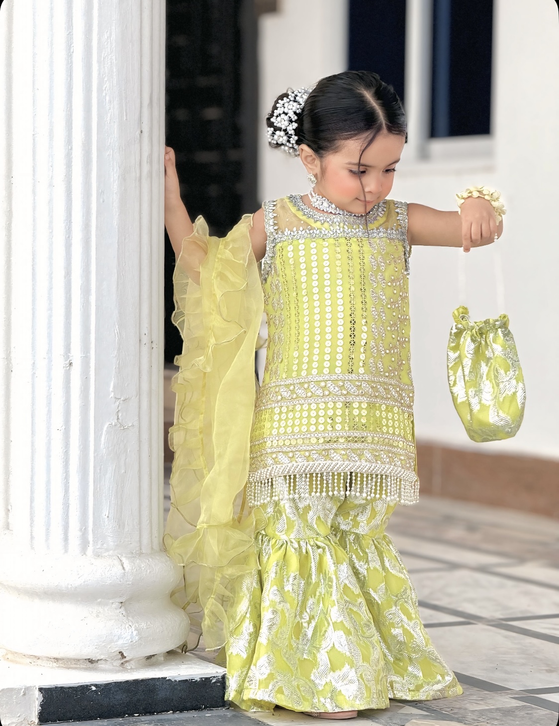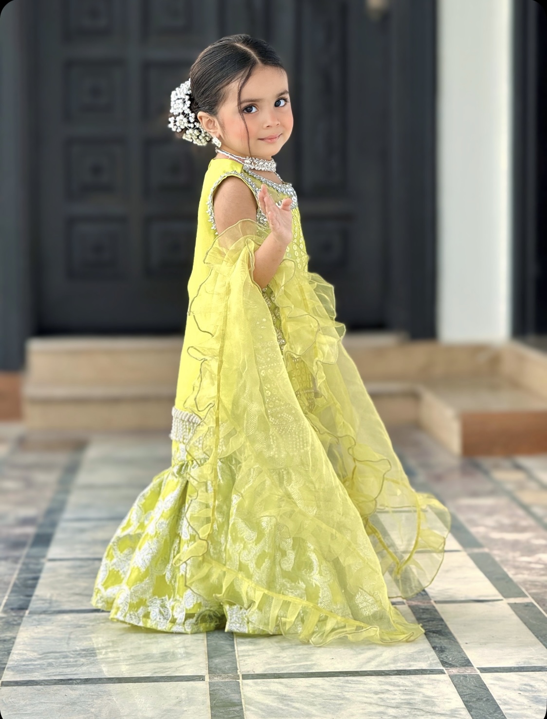 A refreshing lime hue adorned with delicate silver work — a perfect blend of elegance and radiance that steals every glance.