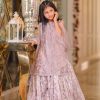 Paired with a graceful crushed sharara and a ruffled dupatta, it blends elegance with modern charm.