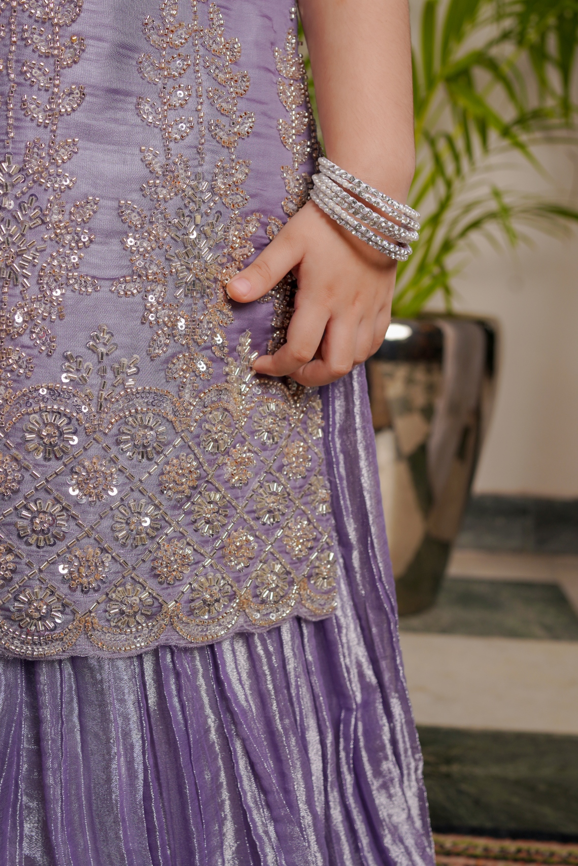 Paired with a shimmery masoori crush sharara
